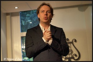 Tuesday: Leave house on bike. Not a huge success, too many bags to carry. We take car instead. At Steinway 10am to start the masterclass. First lessons. Tobias Ringborg arrives to teach a little chamber music. Practice Hammarklavier. Concert at 7pm. Play Hammarklavier, and it goes quite well. Especially happy with slow movement. Sweating like crazy during the gigantic sonata, probably lost two kilos. Here is a picture taken by Majsan of Sweden when I talk the talk: