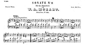 Let’s look at a similar piece by Mozart. Also a simple theme, and a theme which Mozart will improvise on in form of variations. Here are the first two lines of the score: