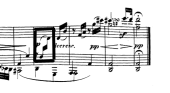 The rest of the Scherzo flies by in a quick tempo, in the score this movement covers just about a page. The slur we talked about is played around with, as is the “echo” effect. As for the Trio, it is very short, and I will just play it here for you, it flies by quickly (and with a rather tricky left hand). I will get back to this passage at the end of the last post, on the Finale.