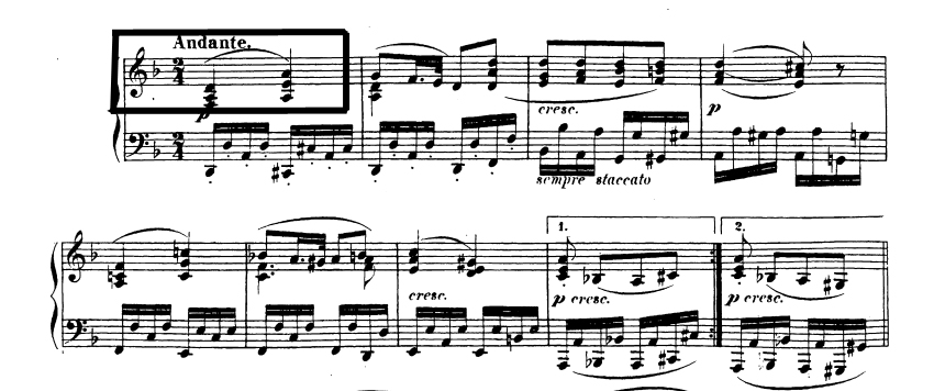 Here are the three different parts, beginning of the Andante, end of the same, and the great difference in character when the Scherzo starts: